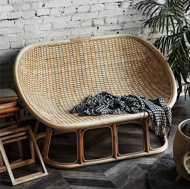 Artículo:Juego de sofá de conversación de muebles de caña de mimbre de ratán natural de jardín