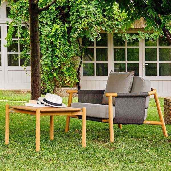 Sillón contemporáneo de teca para exteriores, silla moderna de cuerda y lona para patio, patio o jardín de Villa