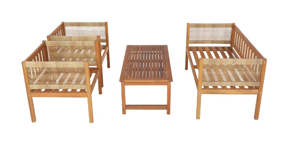 Juego de sofás de madera para exteriores de 4 piezas, lados de ratán PE, mesa de centro para jardín, patios, hoteles, parques, casas de campo, Apartamentos