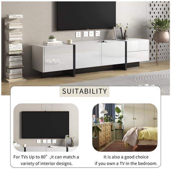 Contemporary Rectangle Design TV Stand Unique Style TV Console Table in White & Black for TVs up to 80 Inches Video Provided