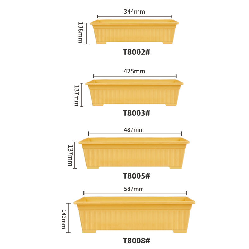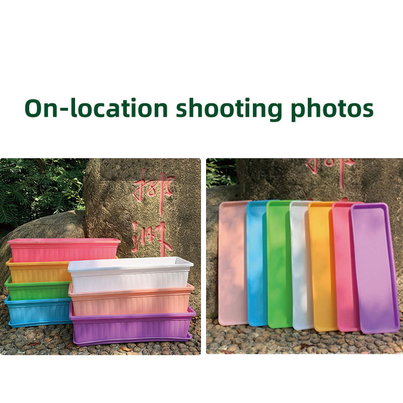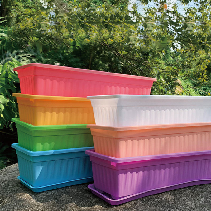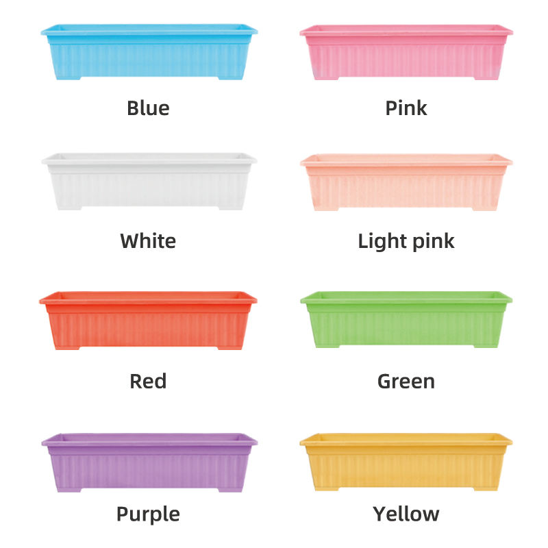 Maceta de plástico rectangular contemporánea larga y colorida para barandilla de balcón, colgante bonito y moderno o uso en el suelo