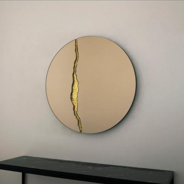 Espejo Redondo Contemporáneo Sin Marco de Bronce con Detalles en Latón, Hecho a Mano, Espejo Redondo de Latón