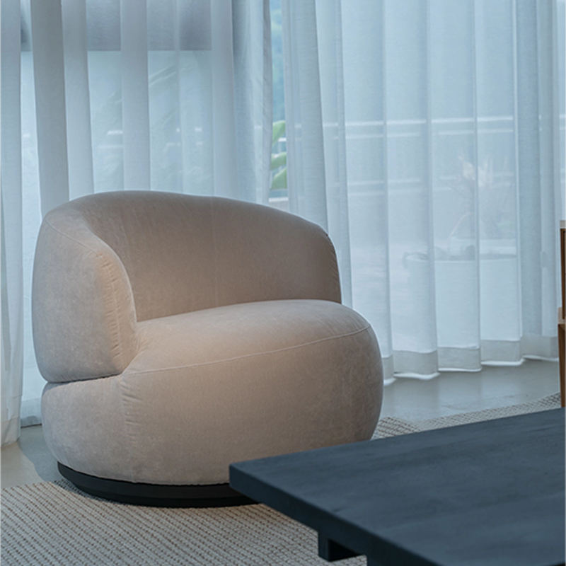 Sillón de Salón Moderno y Minimalista con Brazos Redondeados, Tapizado en Tela Beige, para Sala de Estar