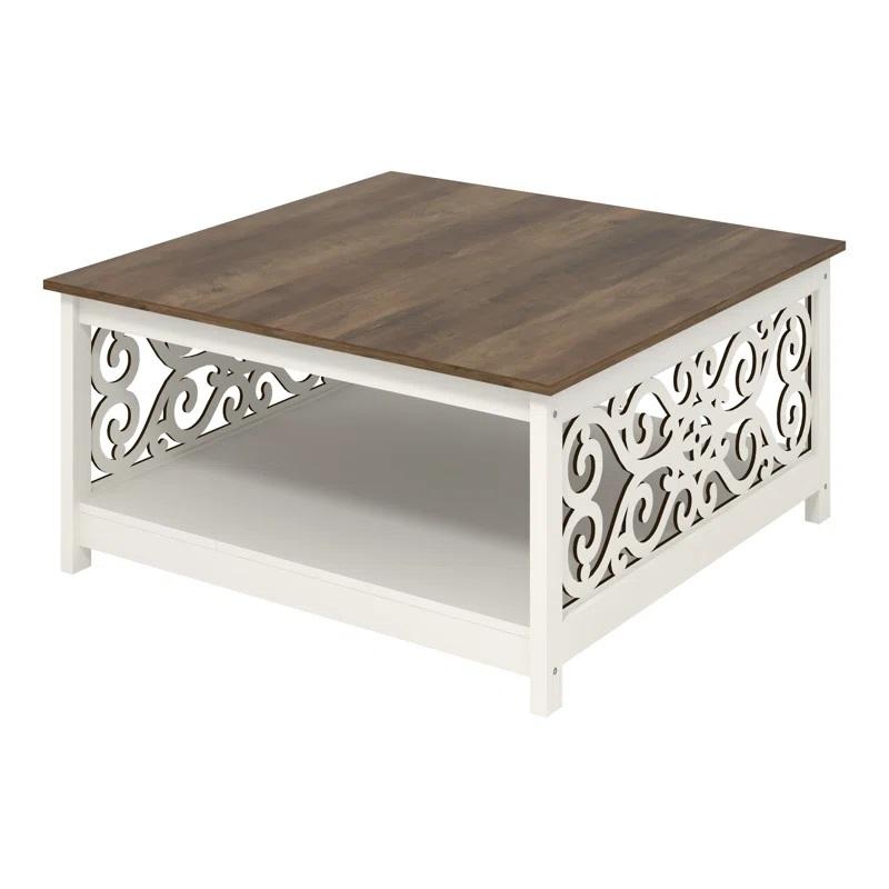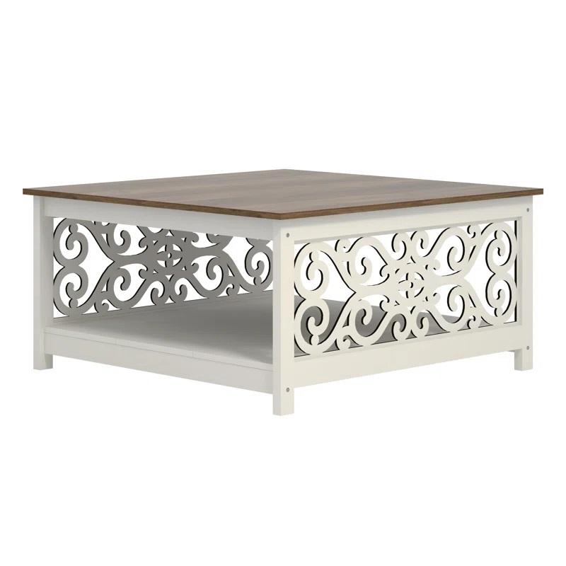 Mesa de centro cuadrada desgastada rústica contemporánea, muebles de madera tallados a mano de mango, hogar, sala de estar, granja, Económico