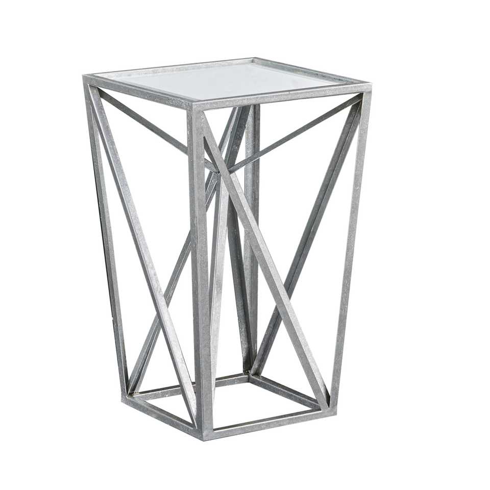 Mesa Auxiliar Contemporánea con Espejo Angular Plateado y Marco Geométrico de Metal para Interiores de Hogar de Lujo