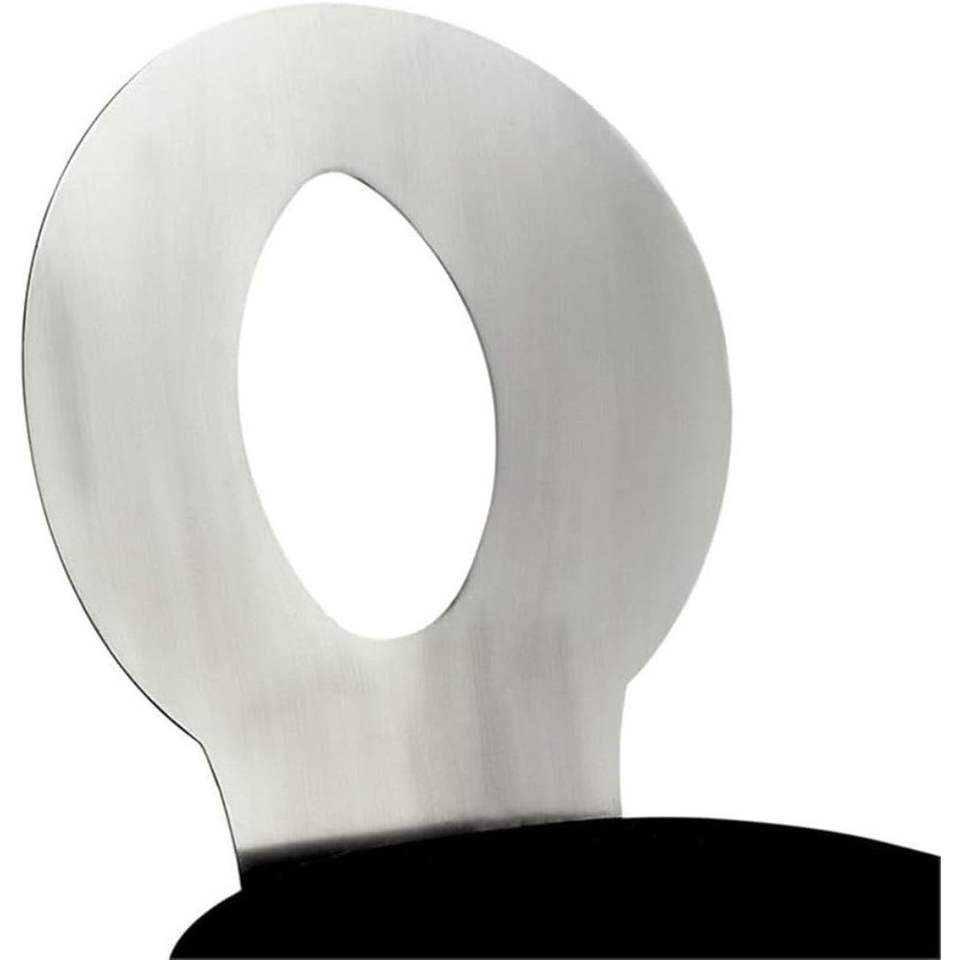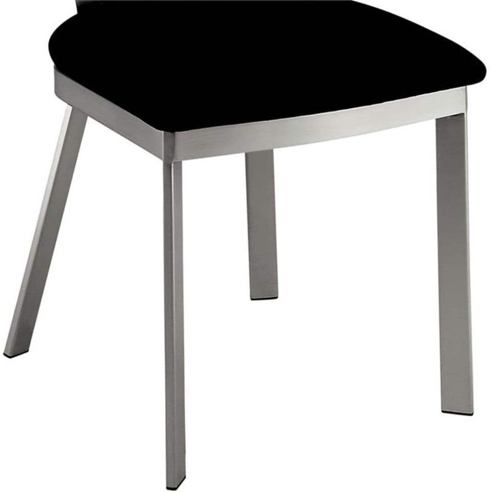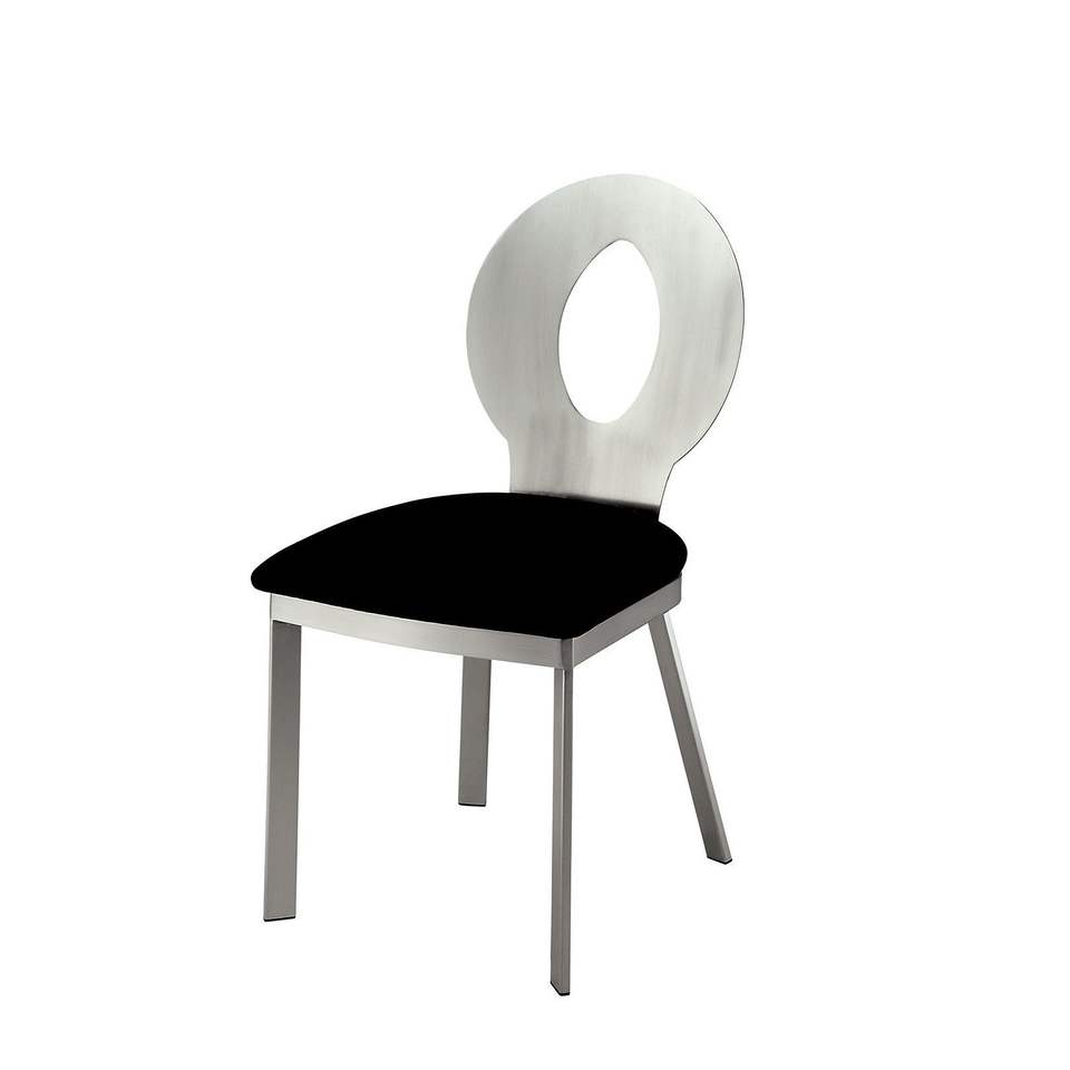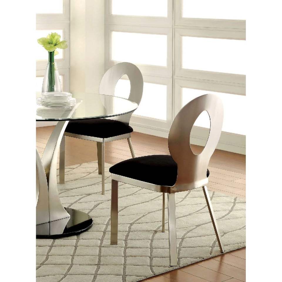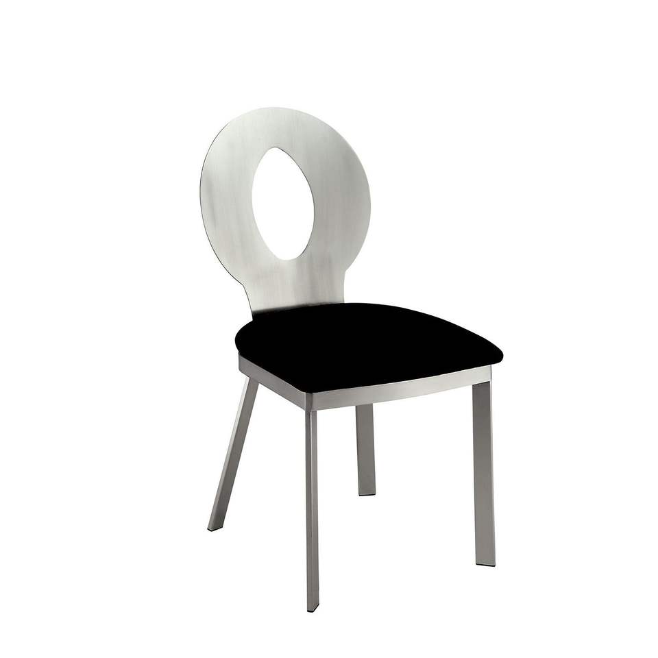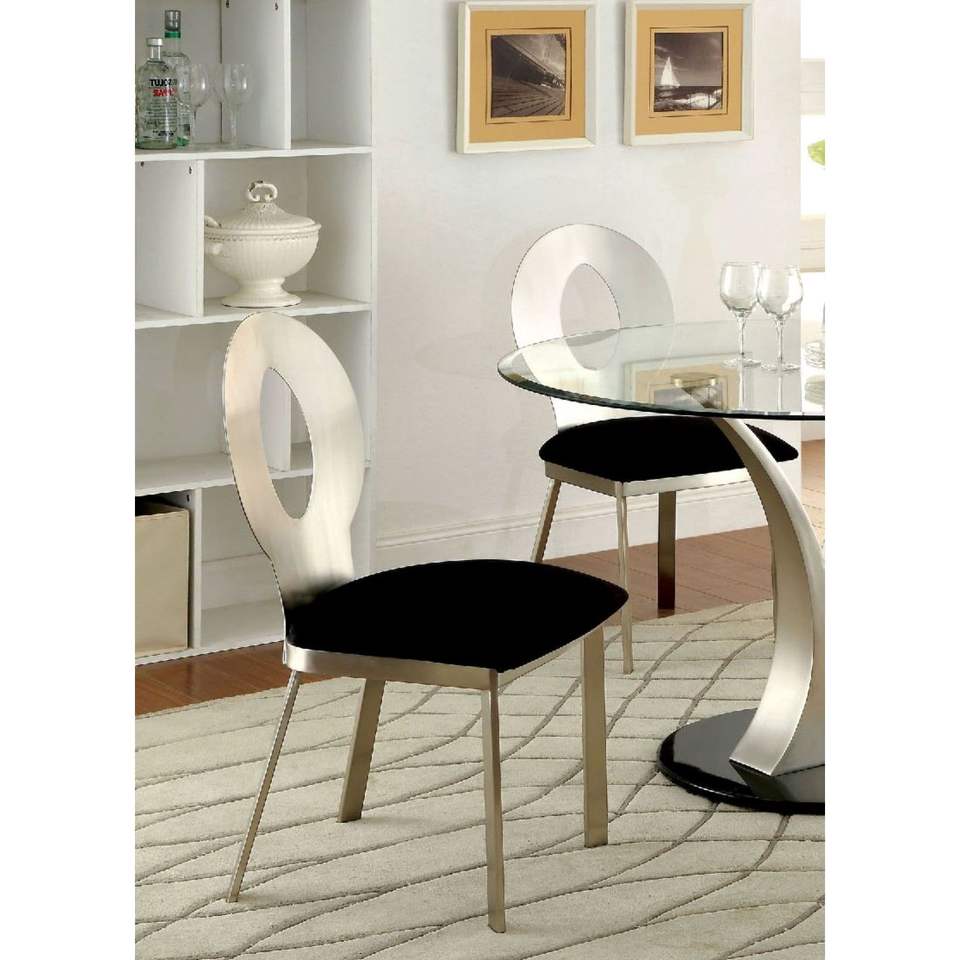 Sillas de Comedor Contemporáneas con Estructura de Metal Plateado, Asiento de Microfibra Negra, Respaldo Ovalado y Recubrimiento en Polvo Satinado para Comedor