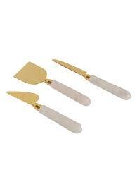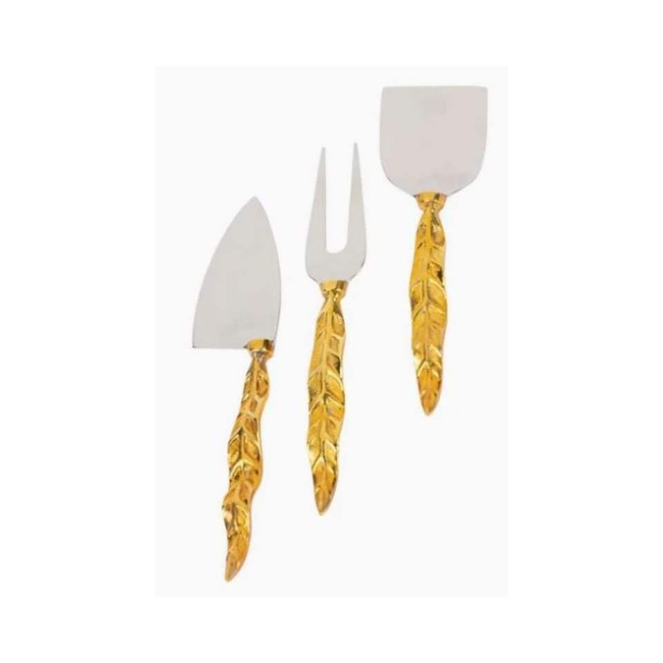 Juego de utensilios contemporáneos para servir queso de acero inoxidable con mango de hoja de latón