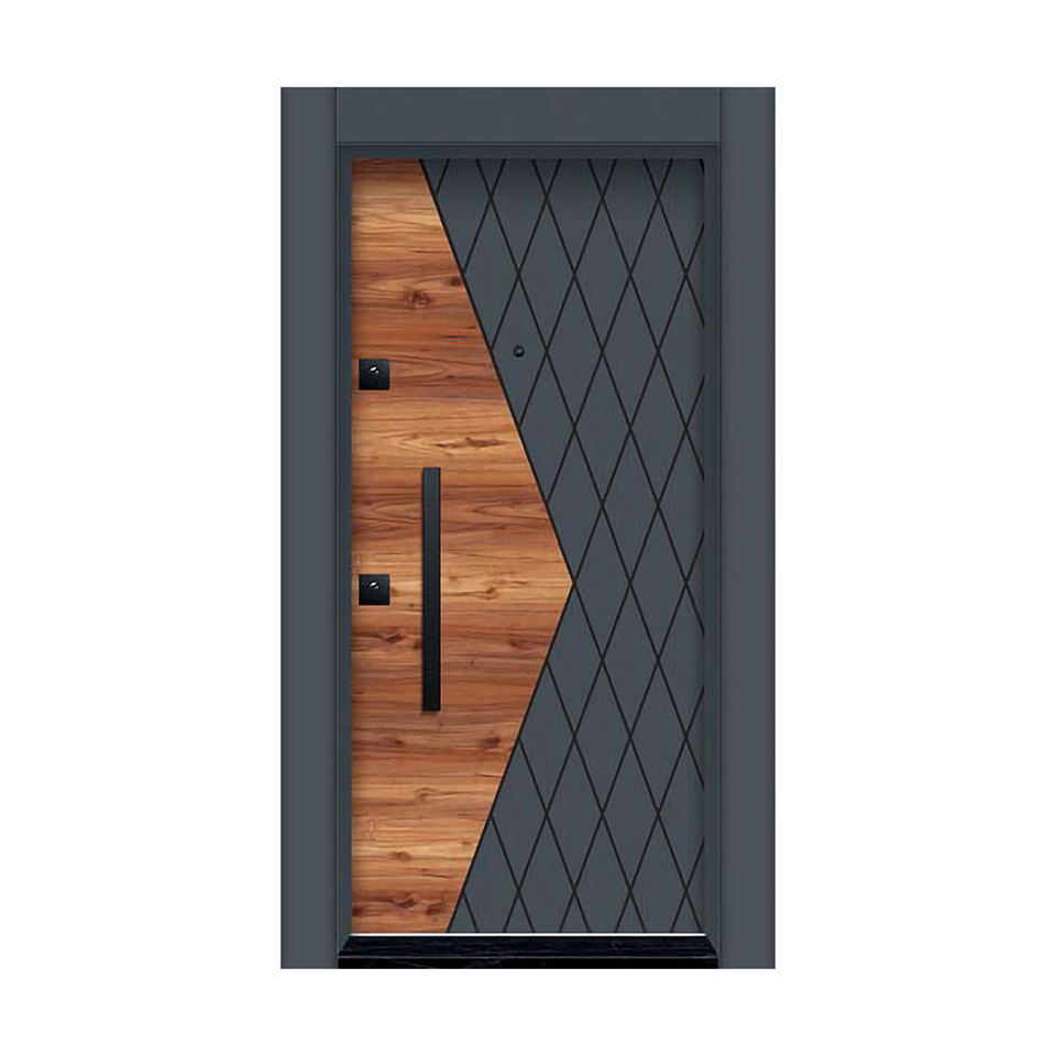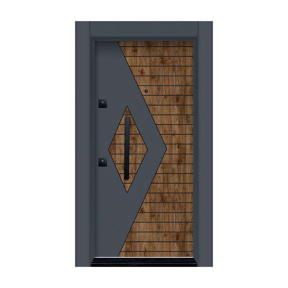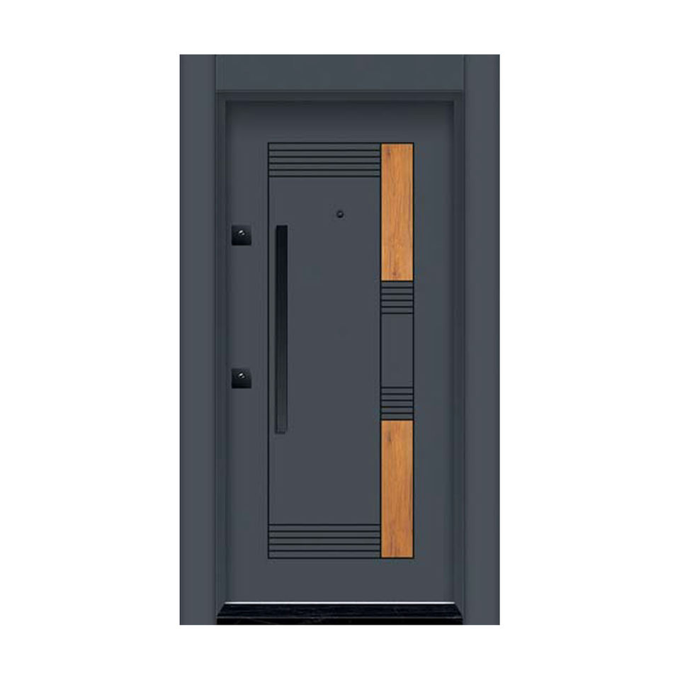 Puerta de Entrada Frontal de Acero Contemporánea Color Gris con Manija de Acero Inoxidable, Puerta Exterior Segura e Impermeable