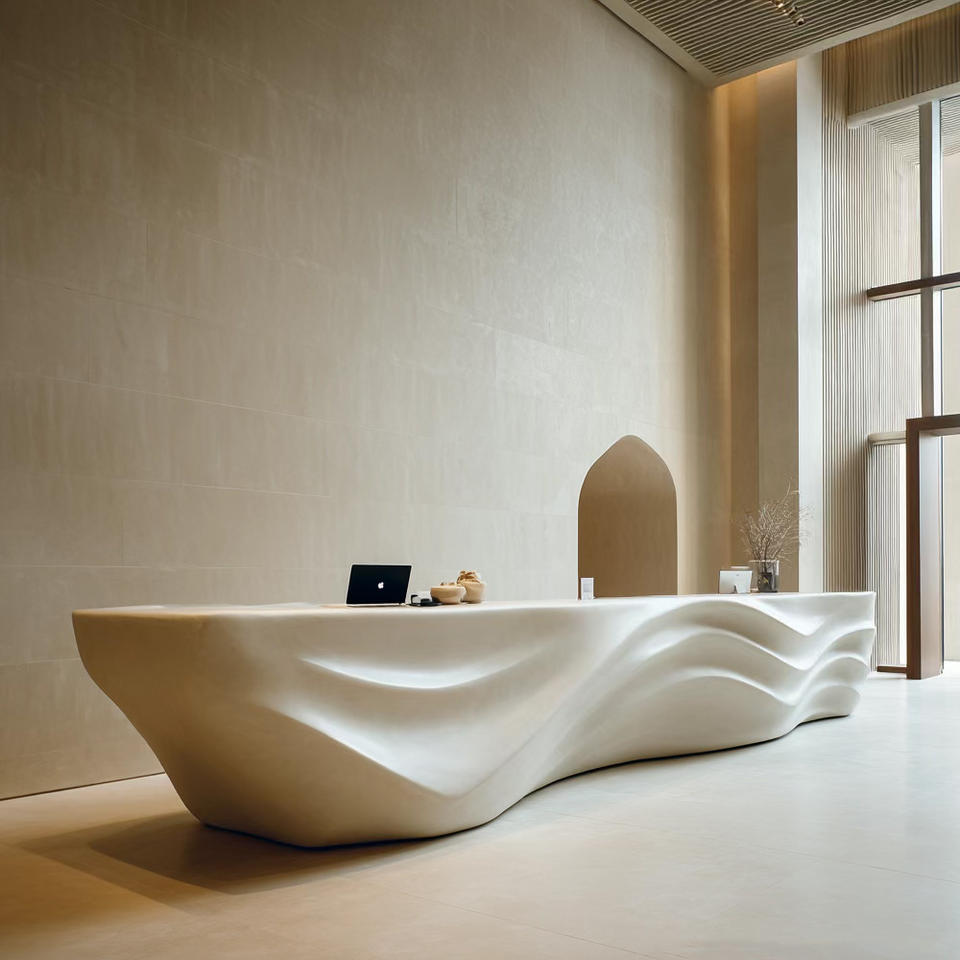 Mostrador de Recepción Contemporáneo Inspirado en la Piedra con Curvas Orgánicas Suaves para Interiores de Vestíbulos Modernos y Espacios Comerciales Premium