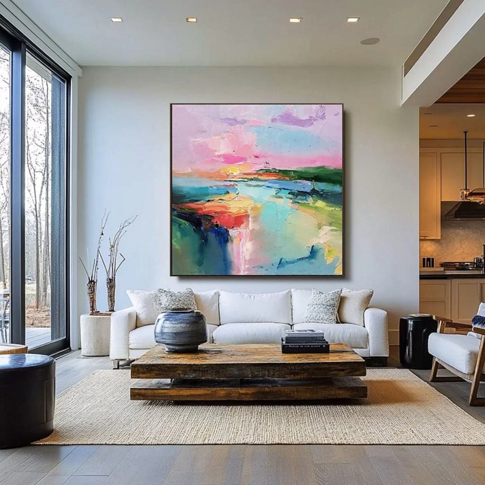 Pintura al Óleo Texturizada Contemporánea, Cuadrada, Abstracta, Minimalista, Decoración de Fantasía, Arte Moderno para Pared, para Hogar y Galería