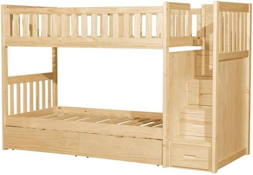Litera contemporánea de madera maciza doble/doble con diseño tradicional de pino natural y cajas de almacenamiento