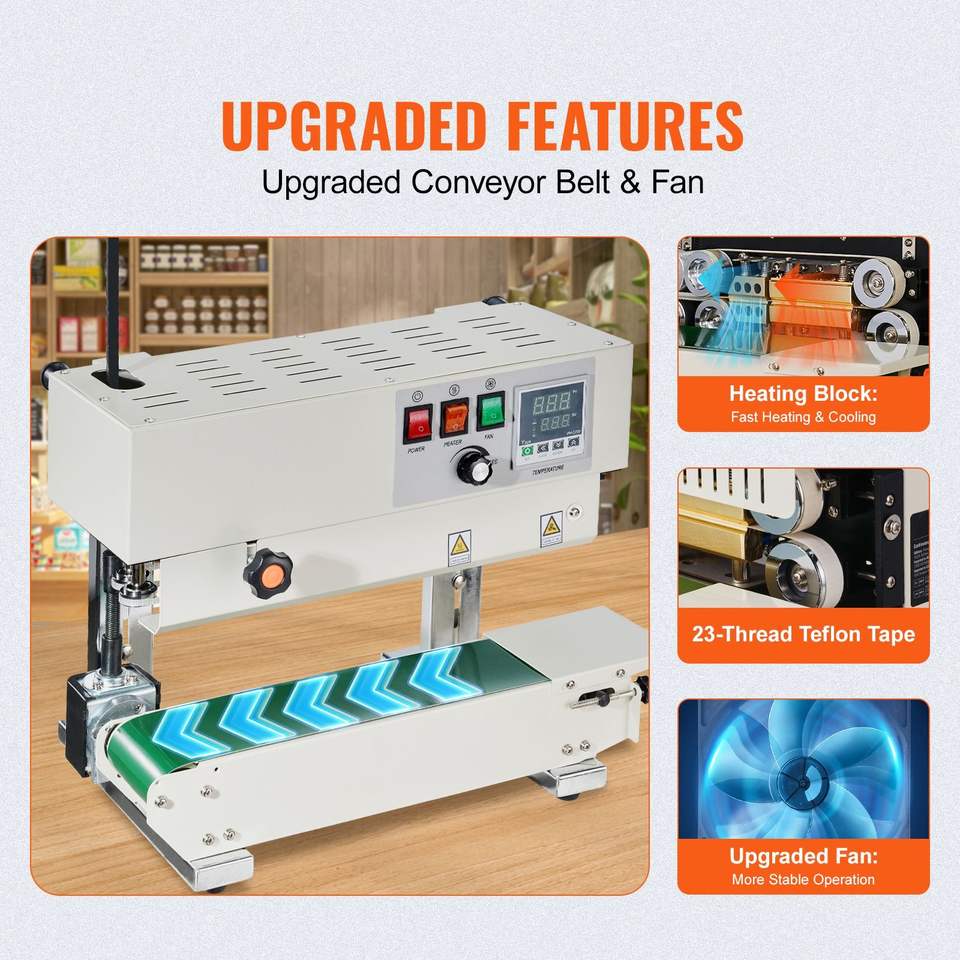 Máquina Selladora de Bolsas Continua con Control Digital de Temperatura Vertical, Ancho de Sellado de 0.24-0.47 Pulgadas/6-12 mm