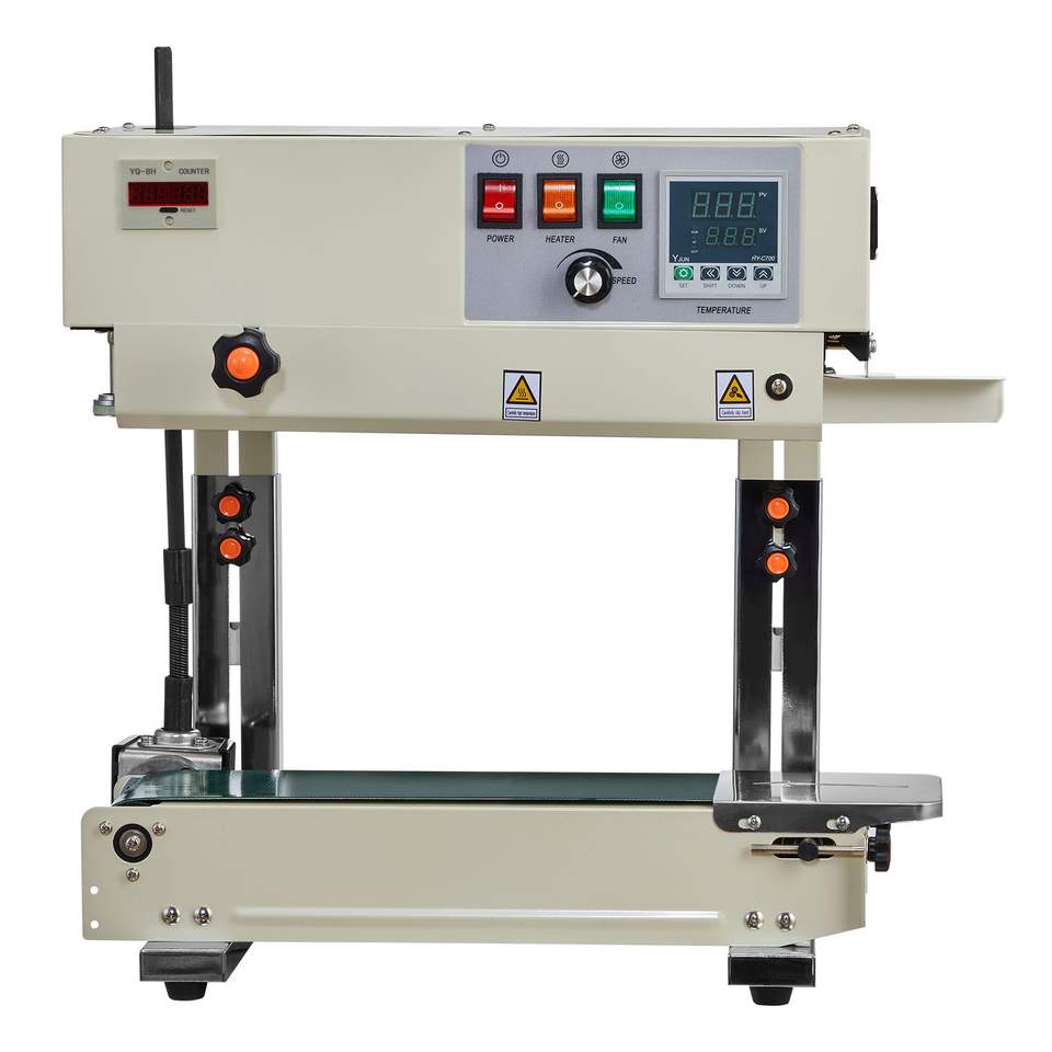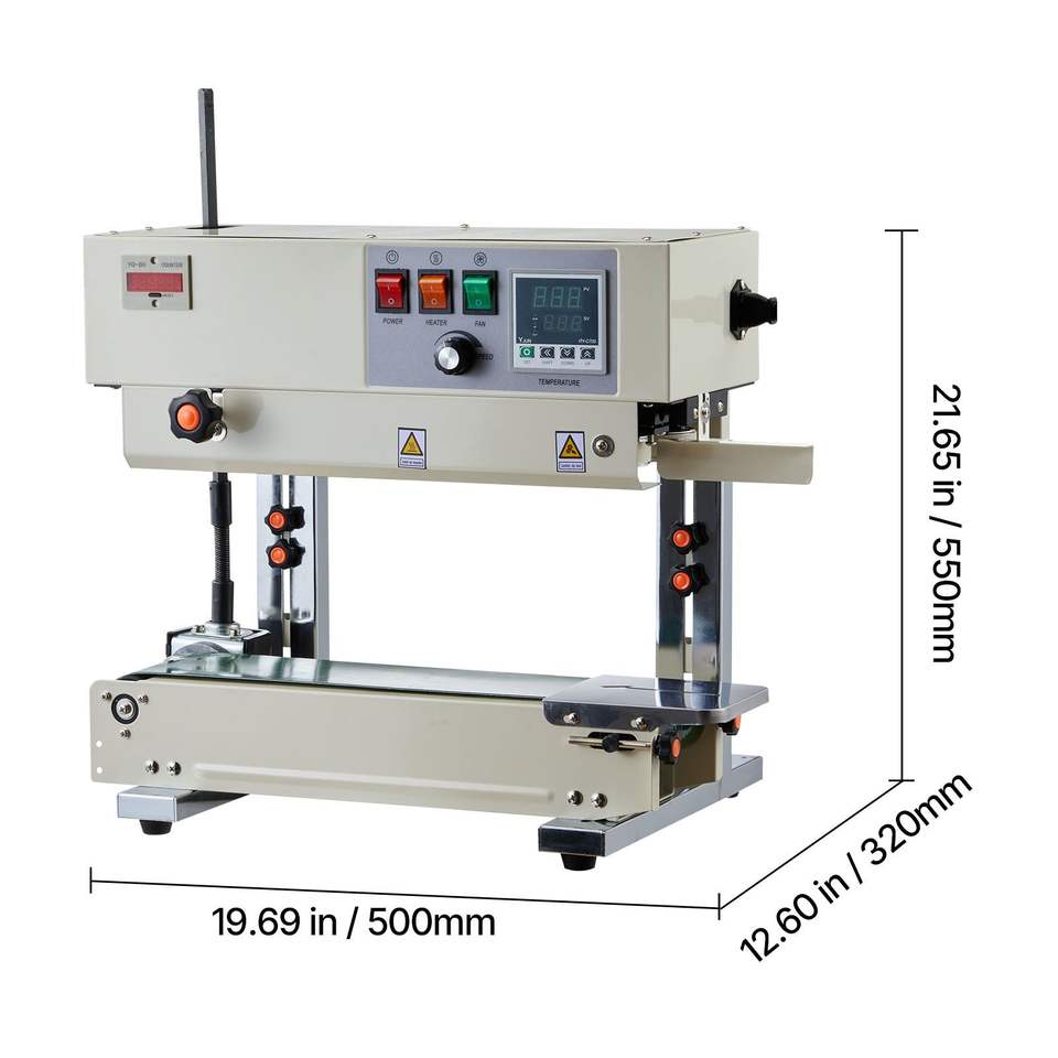 Máquina Selladora de Banda Vertical Continua, Ancho de Sellado de 0.24-0.47 Pulgadas, Impresión por Rodillo con Temperatura y Velocidad Ajustables para Sellado de Bolsas a Alta Velocidad