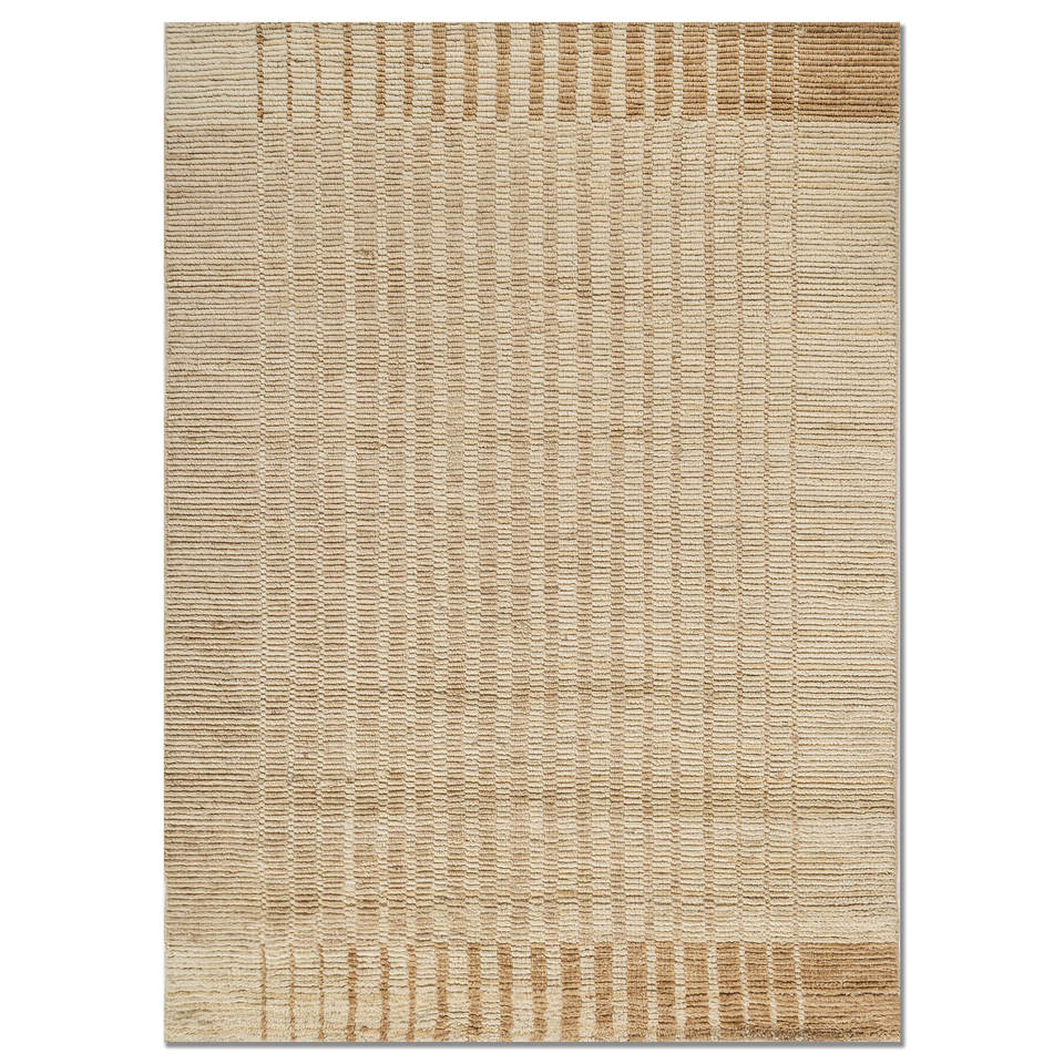 Alfombra de Lana Tejida a Mano Contour Gold, Estilo Bohemio y a Rayas, Rectangular Grande para Dormitorio o Sala de Estar, Hecha a Mano Hwl-439