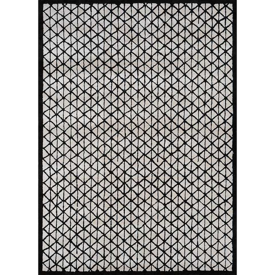 Alfombra Contour Ivory con Patrón Geométrico de Lana y Viscosa, Hecha a Mano, para Sala de Estar, Dormitorio, Pasillo -TNQ-335(CM-01)