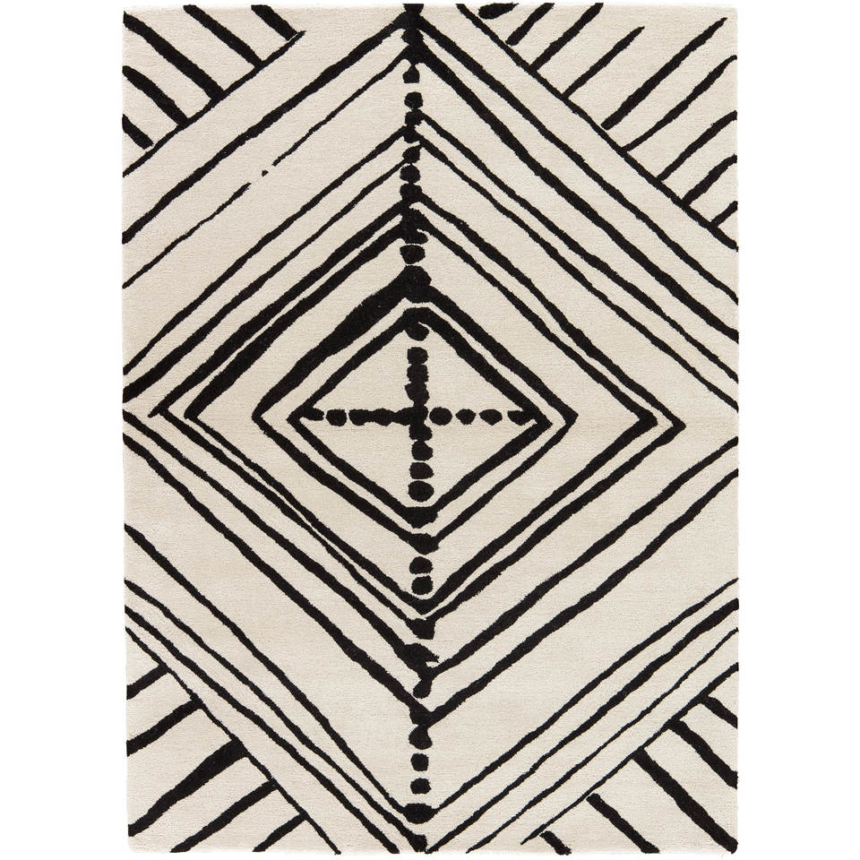 Alfombra Contour Ivory de Lana y Viscosa Hecha a Mano con Diseño Geométrico y Abstracto para Sala de Estar, Pasillo -Taq-4022