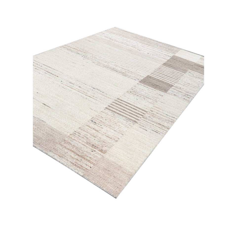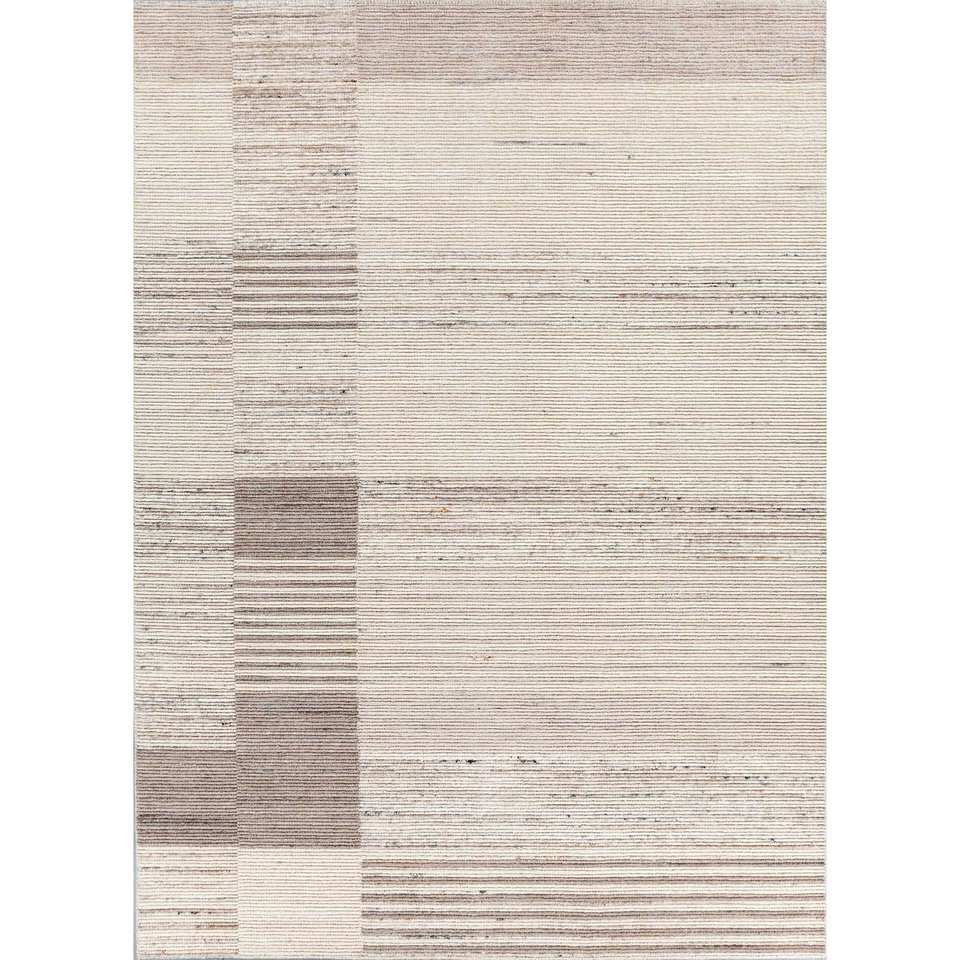 Alfombras de Lana Rayadas Color Marfil, Tejidas a Mano, Diseño Clásico Rectangular para Pasillo, Grosor de Felpa de 10 mm, para Entrada de Casa, Sala de Estar