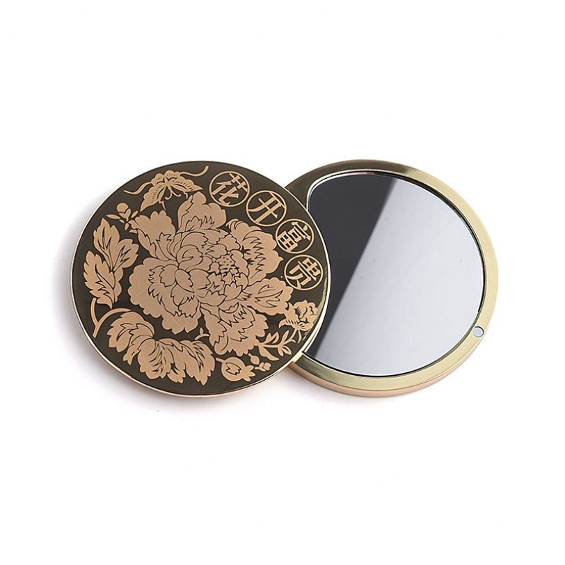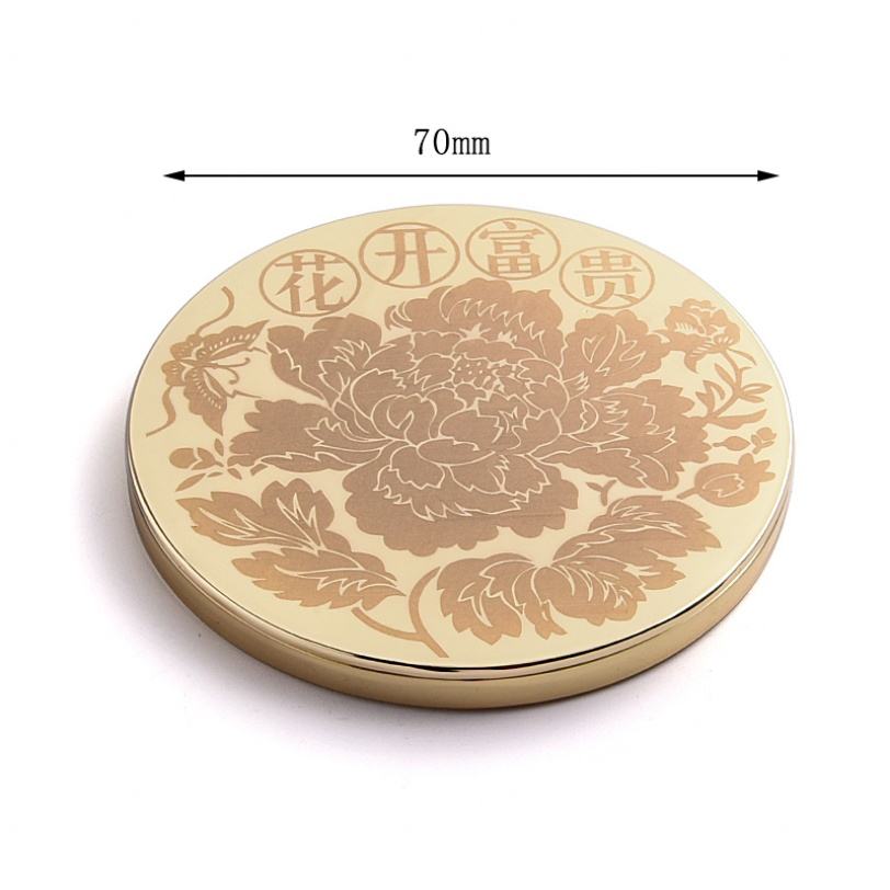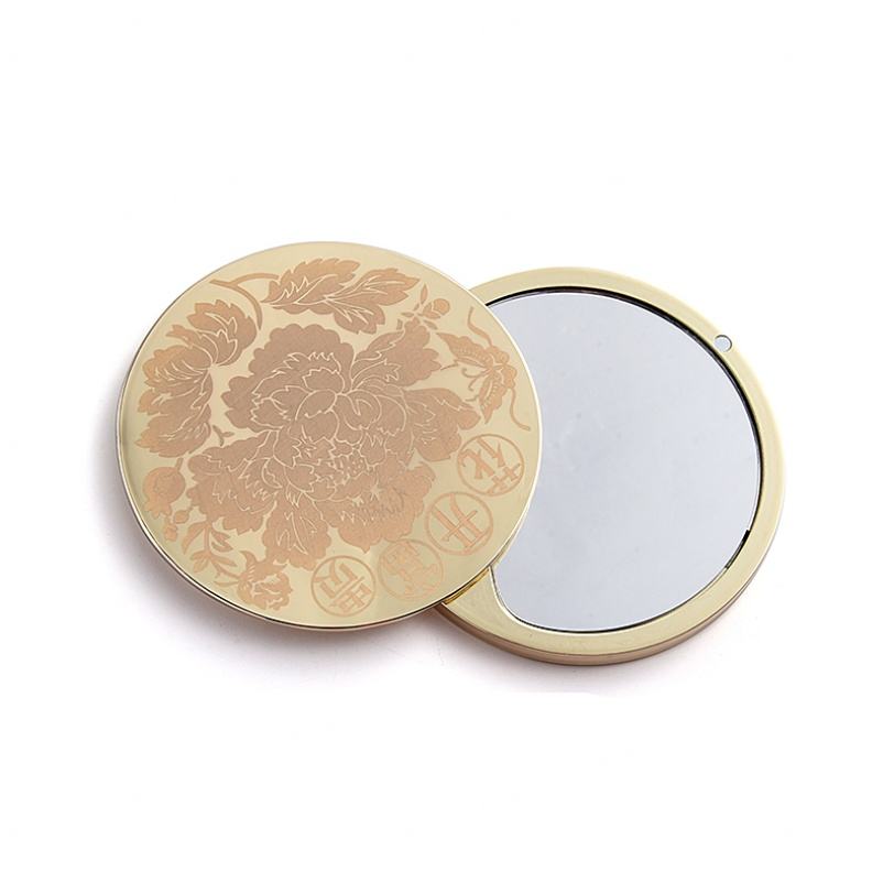Nombre del producto:Espejo de Bolsillo Redondo con Logotipo Grabado en Metal de Diseño Contratado y Espejo Dorado