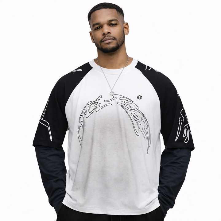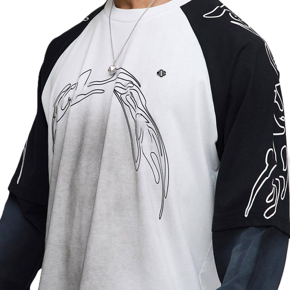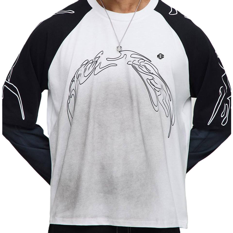 Camisetas de Manga Raglán para Hombre, Estilo Urbano, Camisetas de Manga Larga con Estampado Gráfico de Algodón para Hombre, Producción de Ropa Urbana Personalizada