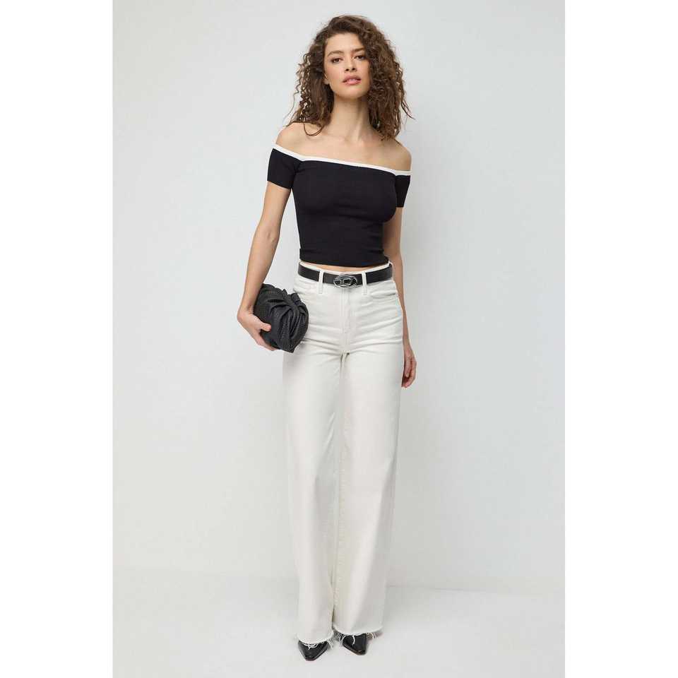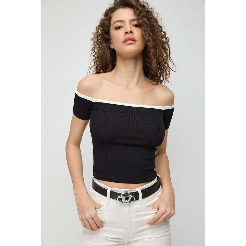 Top de punto acanalado en contraste