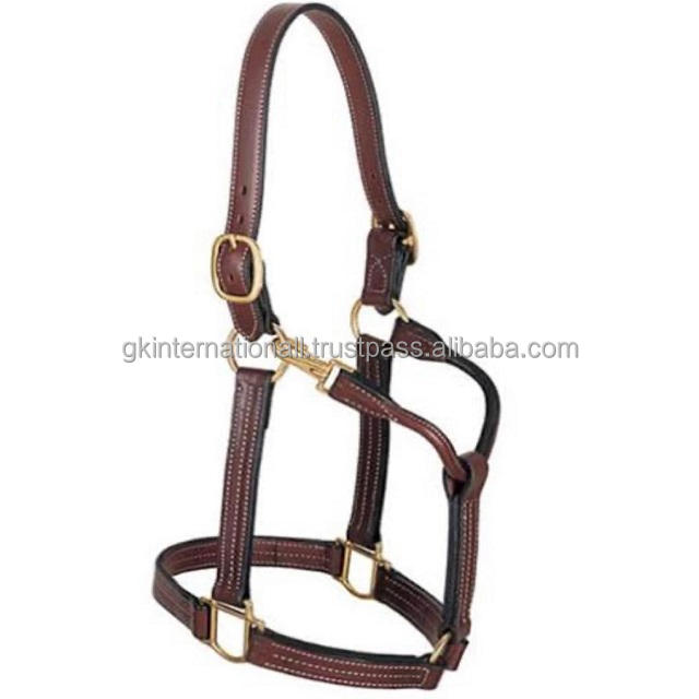 Costura en contraste Heavy Duty Doble ajustable Havana Brown English Leather Horse Halter en tamaños y colores personalizados Pedido al por mayor