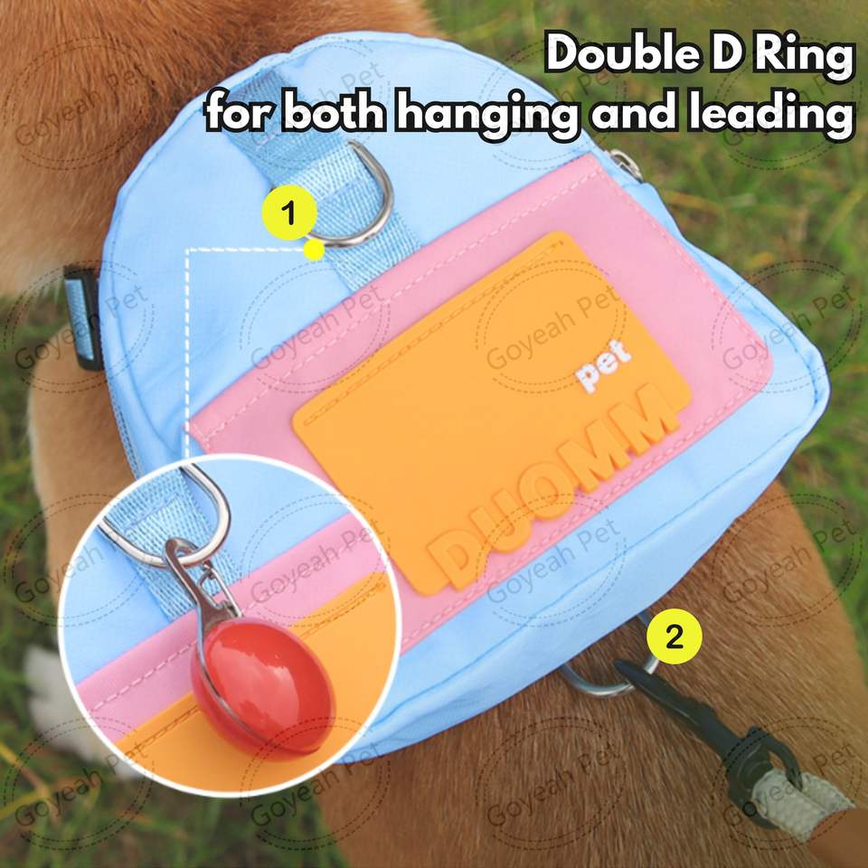 Nombre del producto:Arnés para cachorros con mochila, diseño de colores contrastantes y estilo adorable.