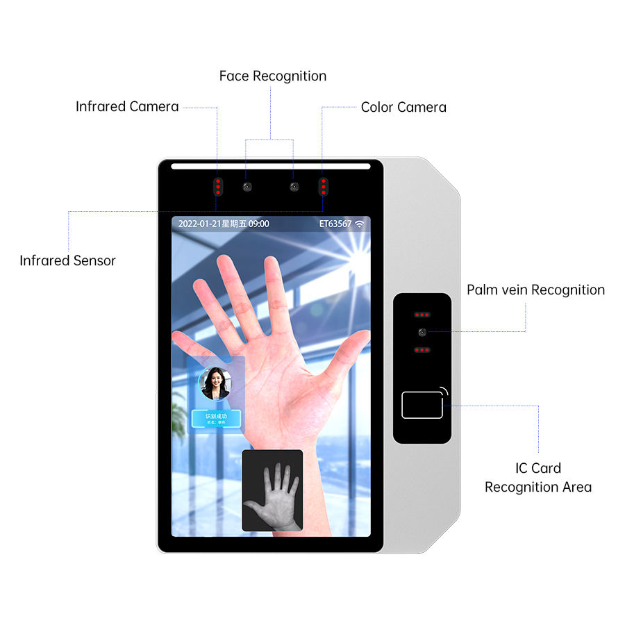 8 pulgadas Cara+lectura de tarjeta+huella dactilar