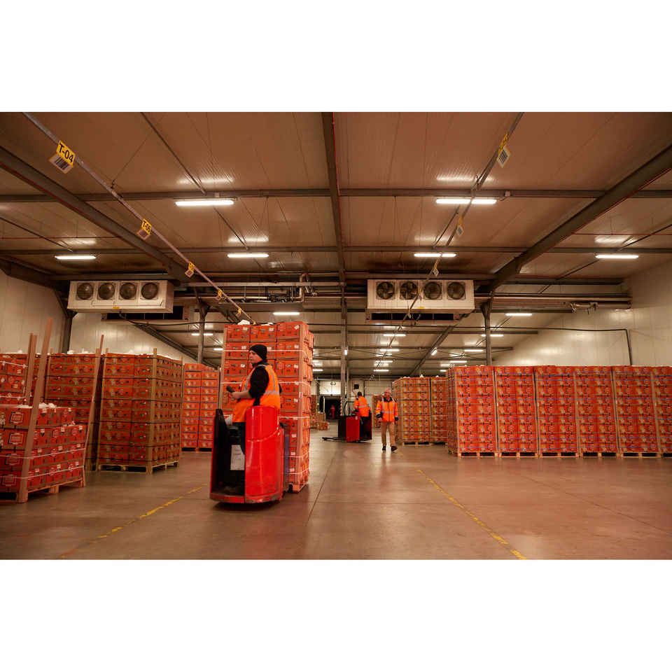 Almacenamiento en frío controlado por temperatura para productos alimenticios frescos.