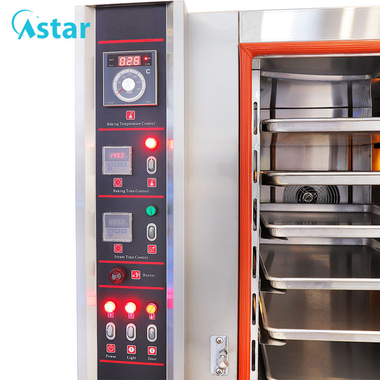 : Función:The inside and outside of the oven area all constructed from stainlesssteel, with heat resistant glass door, Equipped with two timers, one for baking,the other for steaming, Adjustable steaming time, good for french baguette, Air convection, fast baking