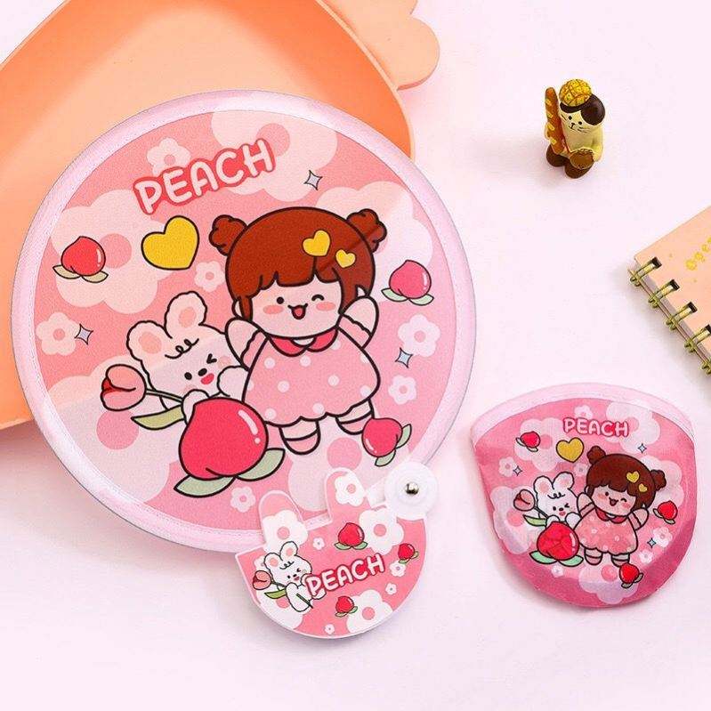 Ventilador Plegable Portátil para Estudiantes, Mini Ventilador Reflectante de Plástico con Diseño de Dibujos Animados, Ecológico, Duradero, Pequeño, Cubierto de Tela