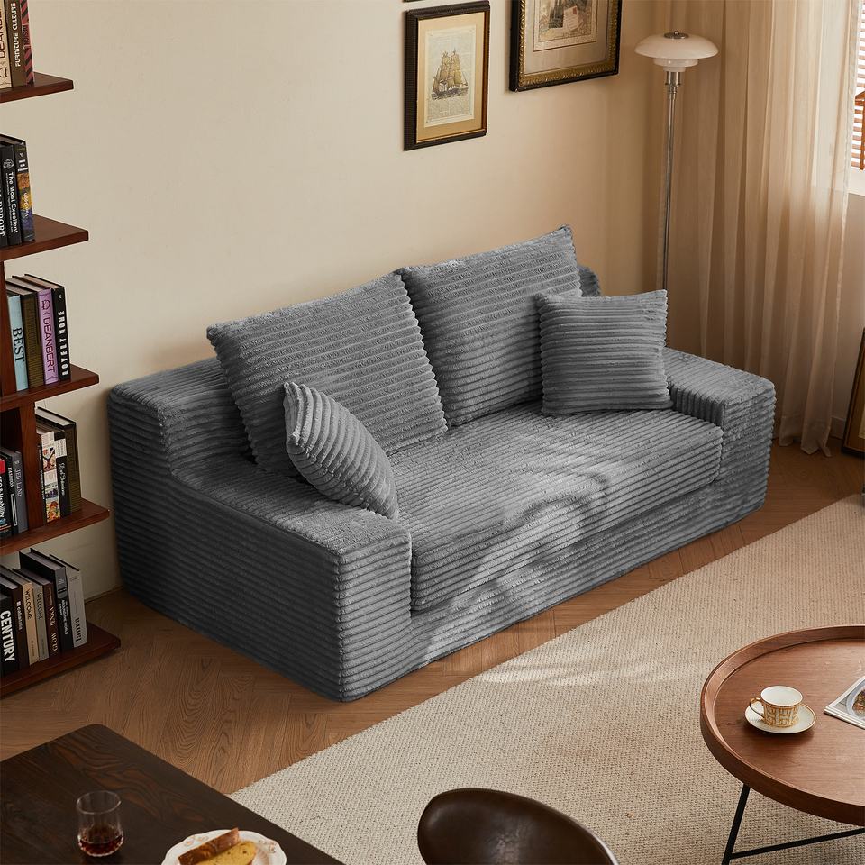 Sofá cama convertible 2 en 1, sin montaje, tela de pana, sofá comprimido de alta densidad para sala de estar y apartamento, gris