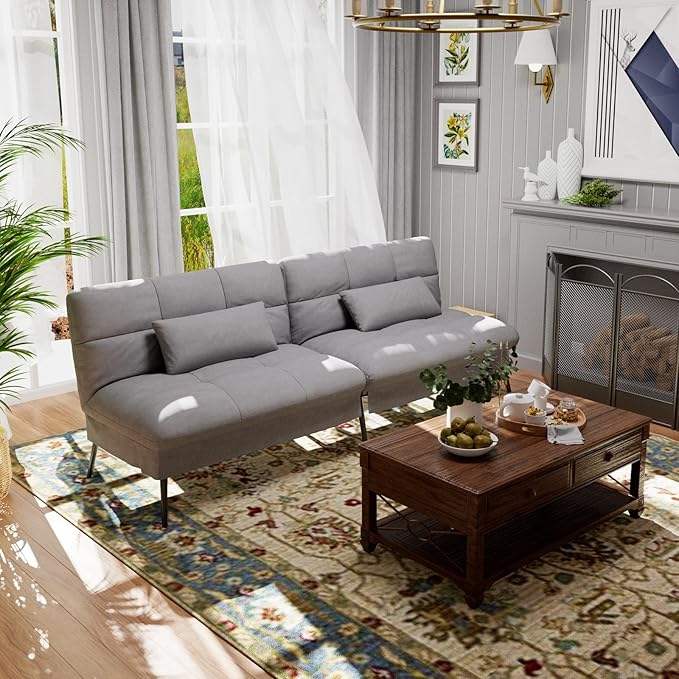 Sofá de futón de tela convertible, respaldo extensible, ajustable, plegable, reclinable, sofá modular seccional, muebles, Villa