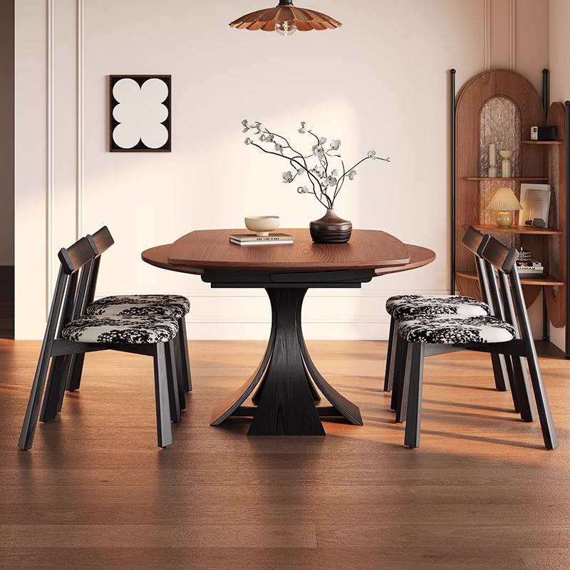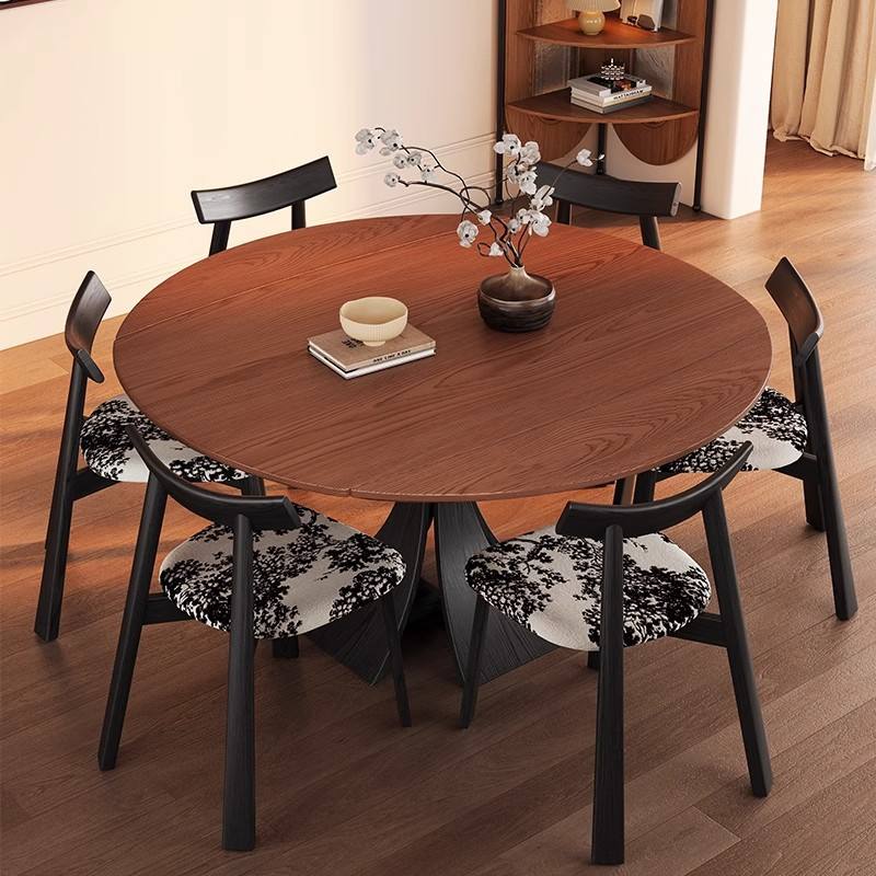 Mesa de comedor redonda convertible de madera maciza de nogal, extensible de 1.2m a 1.35m, para comedor