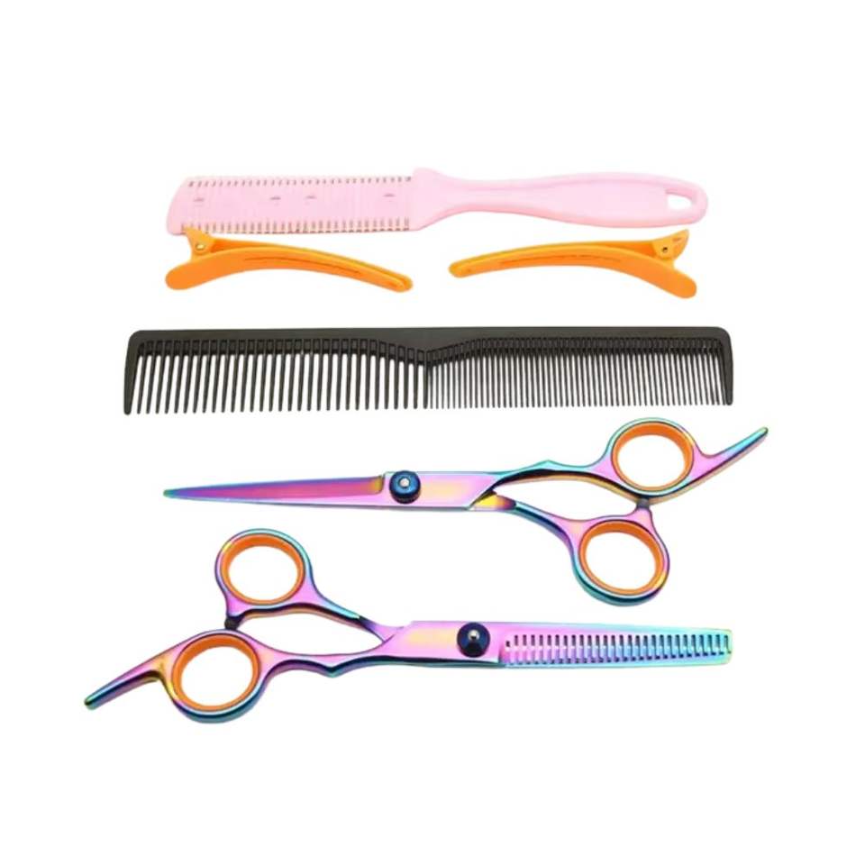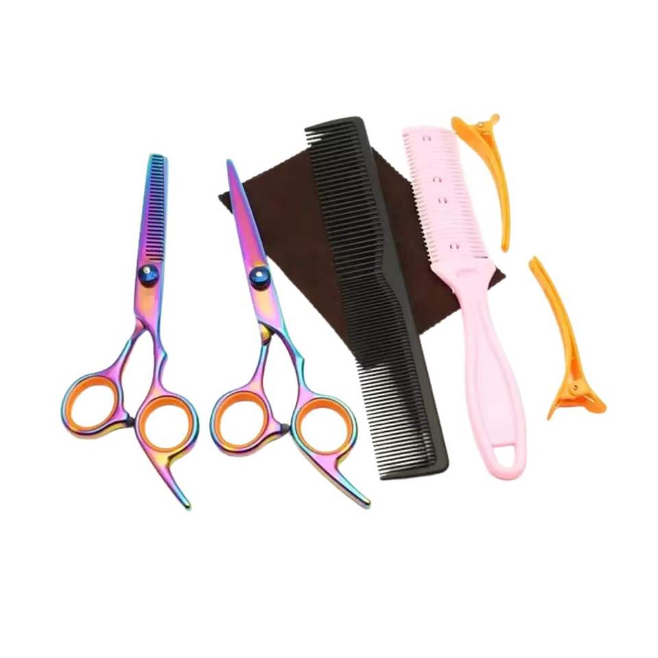 El kit incluye:2 Tijeras Arcoíris 1 Navaja 2 Peines 2 Pinzas