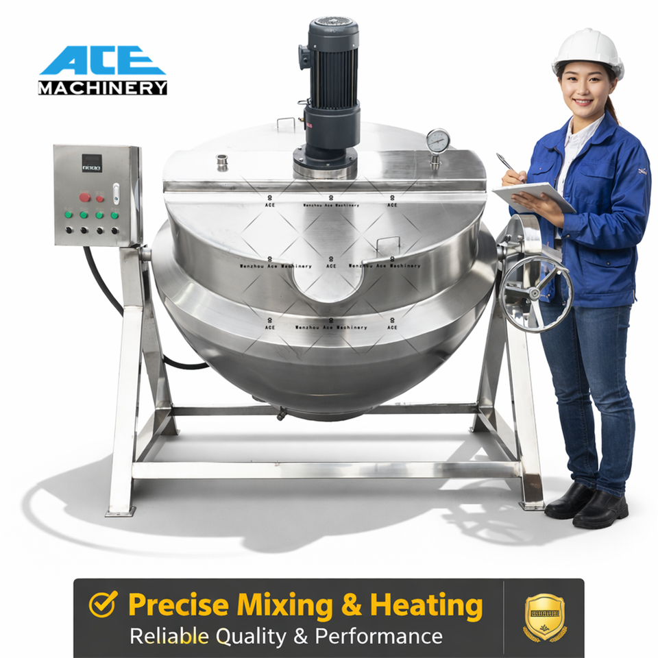 Olla de Cocción de Doble Pared Tipo Caldera a Gas con Agitador Mezclador