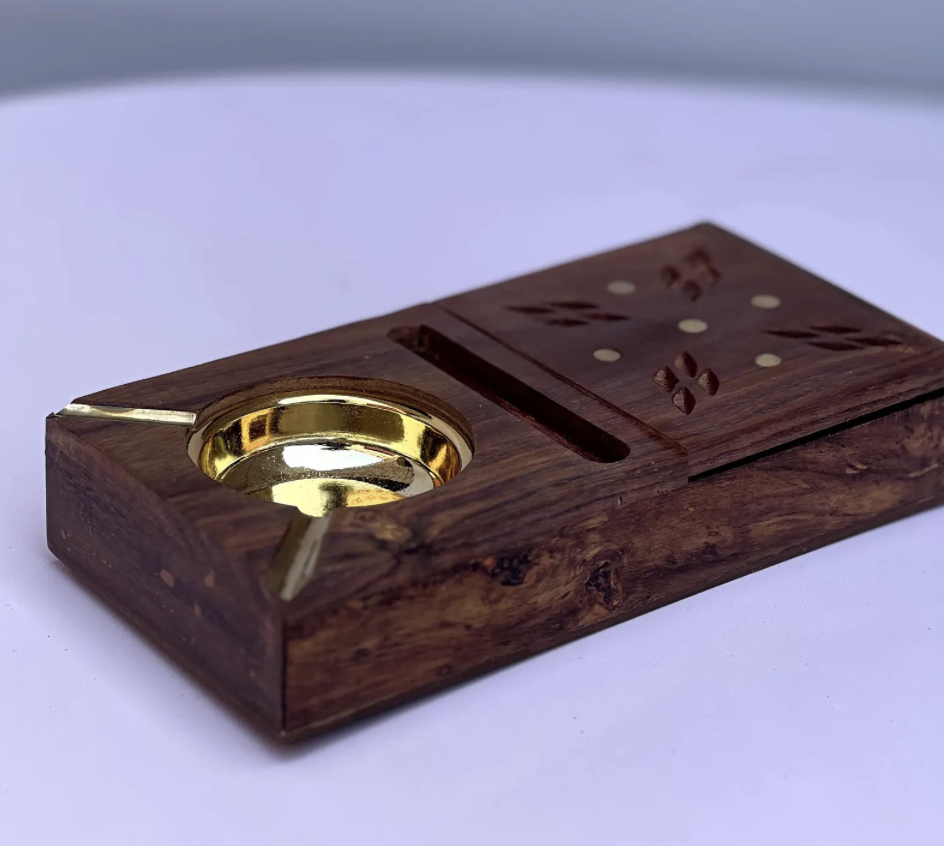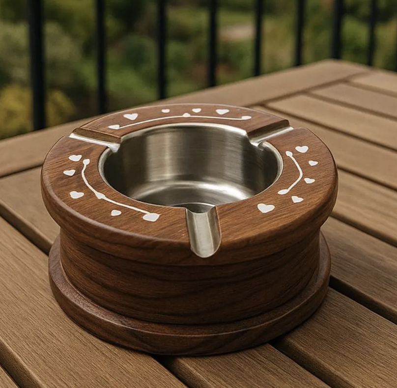 Ceniceros geniales para cigarrillos Cenicero trapezoidal para Exteriores con revestimiento de acero inoxidable Cenicero de madera con