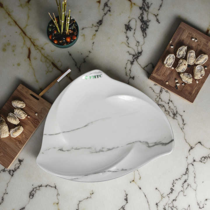 Vajilla de melamina Irregular de Color fresco, plato blanco con calcomanía de piedra, plato de plástico en forma de molino de viento, platos de comida occidental de 8 pulgadas