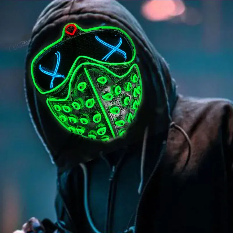 Máscara Cyberpunk Luminosa LED con Diseño de Cara de Muerte para Halloween, Cosplay y Fiestas, Brilla en la Oscuridad