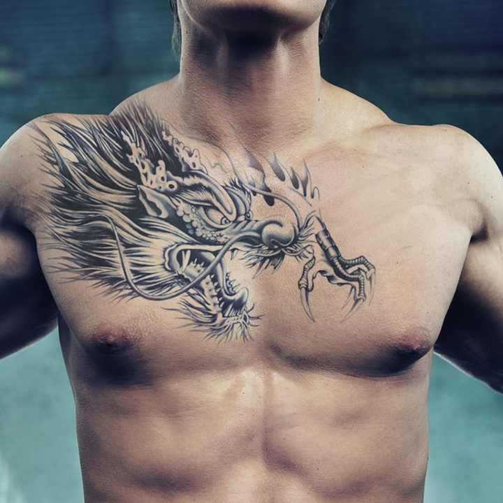 Calcomanía de tatuaje para hombre, diseño de dragón, resistente al agua, temporal, para pecho, brazo y hombro