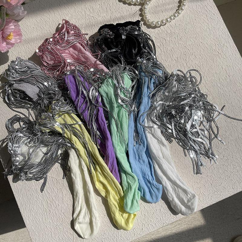 Calcetines geniales para niñas 2025, calcetines de lentejuelas de cristal de encaje metálico brillante con borlas para niños pequeños