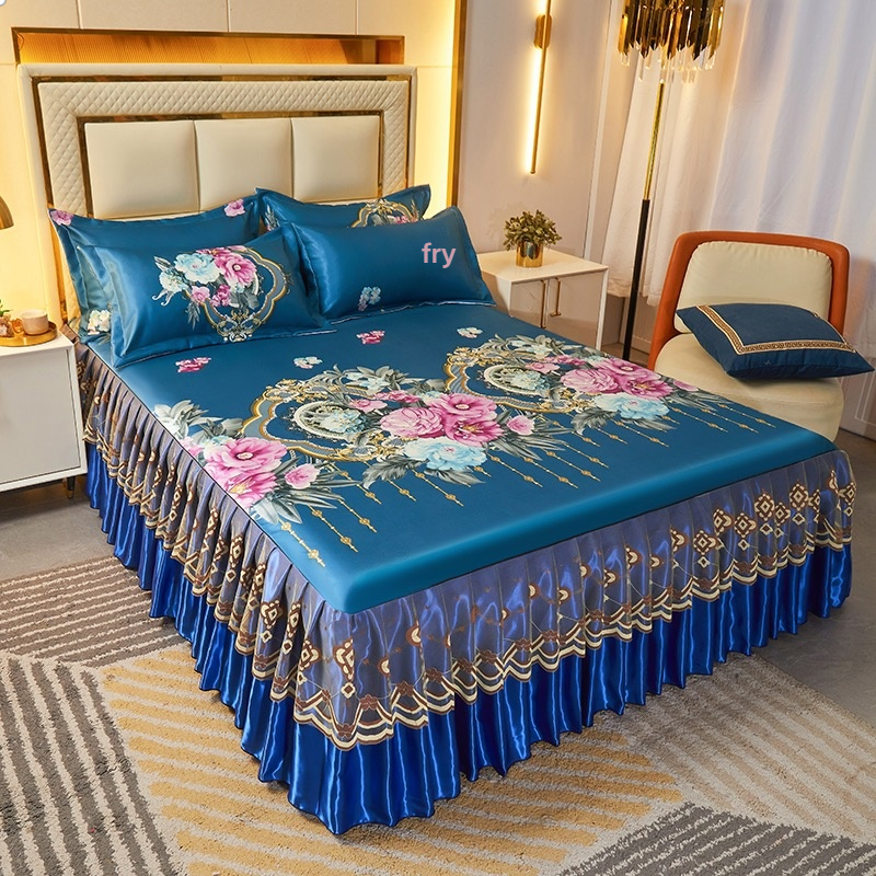 Faldón de cama de 180 cm x 220 cm/1 unidad + funda de almohada de 48 cm x 74 cm/2