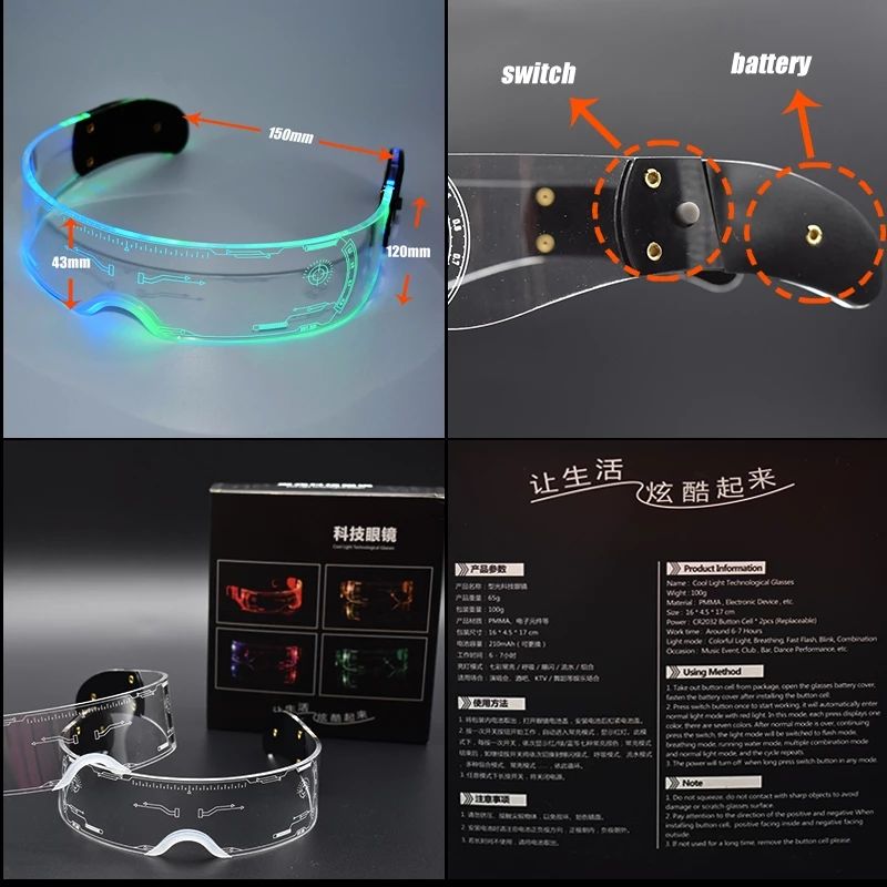 Gafas LED Geniales, Gafas de Sol Luminosas, Gafas de Fiesta Cyberpunk, Gafas de Neón para Fiestas Rave, Máscara de Neón, Juguetes, Gafas Decorativas para Conciertos Vocales, DJ