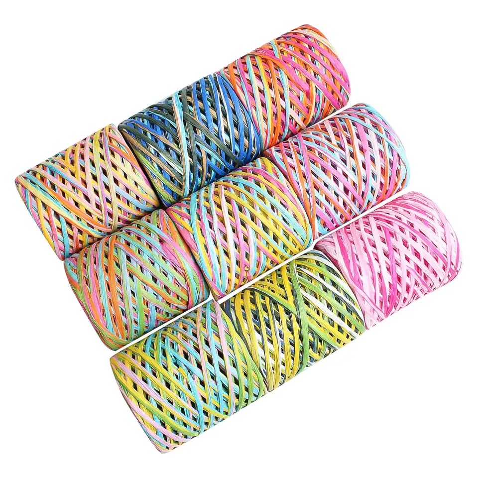 Hilo de paja de rafia Natural Coomamuu, hilo de algodón multiusos para ganchillo a mano, bordado, costura, bricolaje, rafia elegante teñida