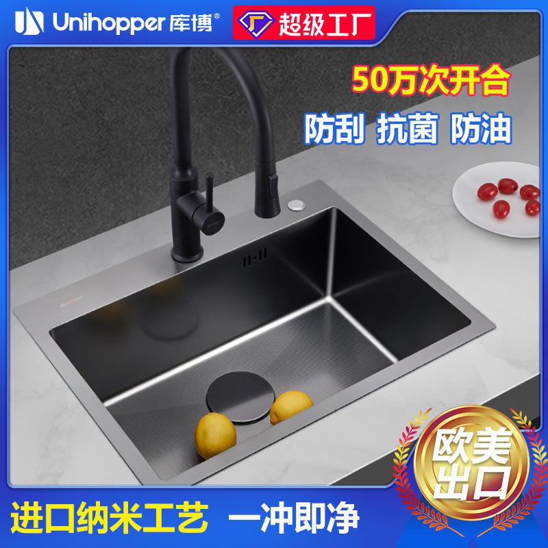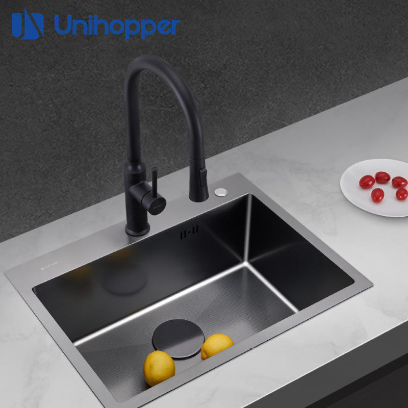 Fregadero Individual Grande para Cocina Cooper Home, Acero Inoxidable 304, Negro Mate, con Textura Nano, Multifuncional, para Lavar Platos