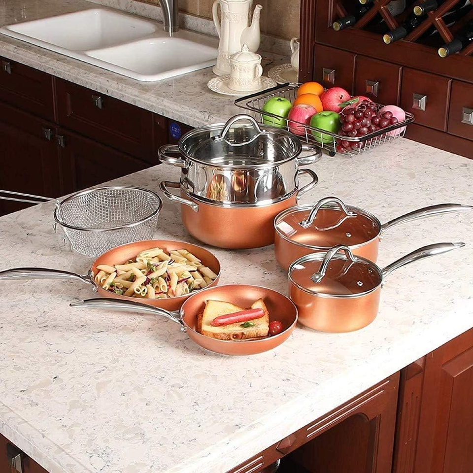 Utensilios de cocina de aluminio y cobre, utensilios de cocina para el hogar, Horno Holandés, sopa, carne de leche, olla para freír, olla de cobre, juegos de utensilios de cocina