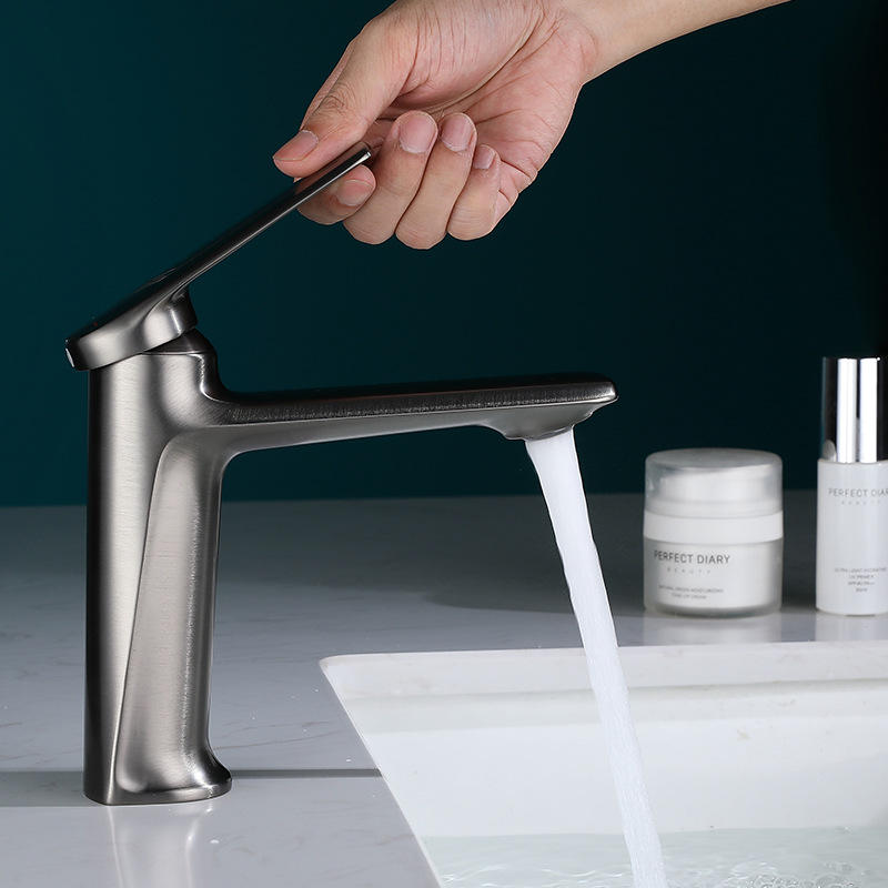 Grifo de lavabo de cobre con una sola manija, montado en el encimera, de un solo orificio, para agua fría y caliente, para lavabo de baño.