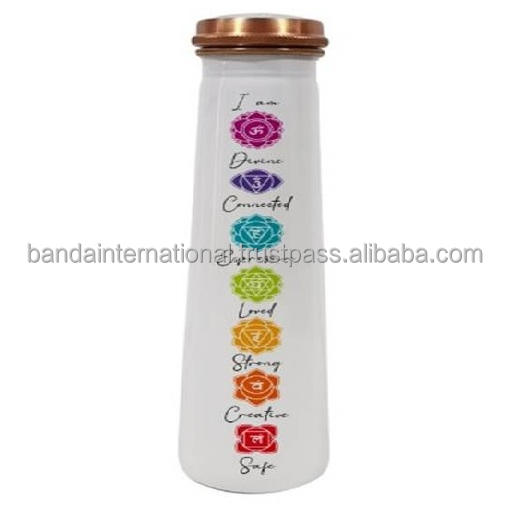 Botella de cobre con etiqueta y acabado pulido, hecha a mano en India, con beneficios para la salud, botella de agua potable de cobre puro.