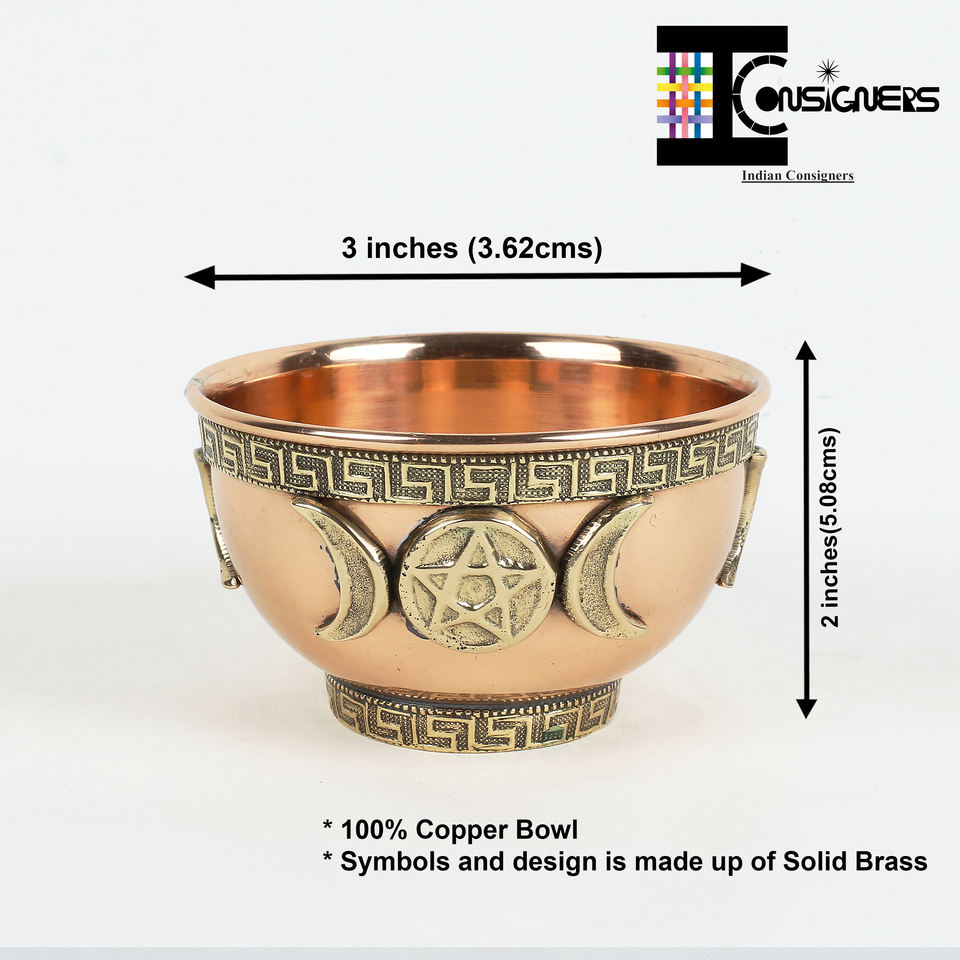Cuenco de Cobre Pequeño para Incienso, Multiusos, con Diseño de Pentagrama y Árbol de la Vida, por Proveedores Indios