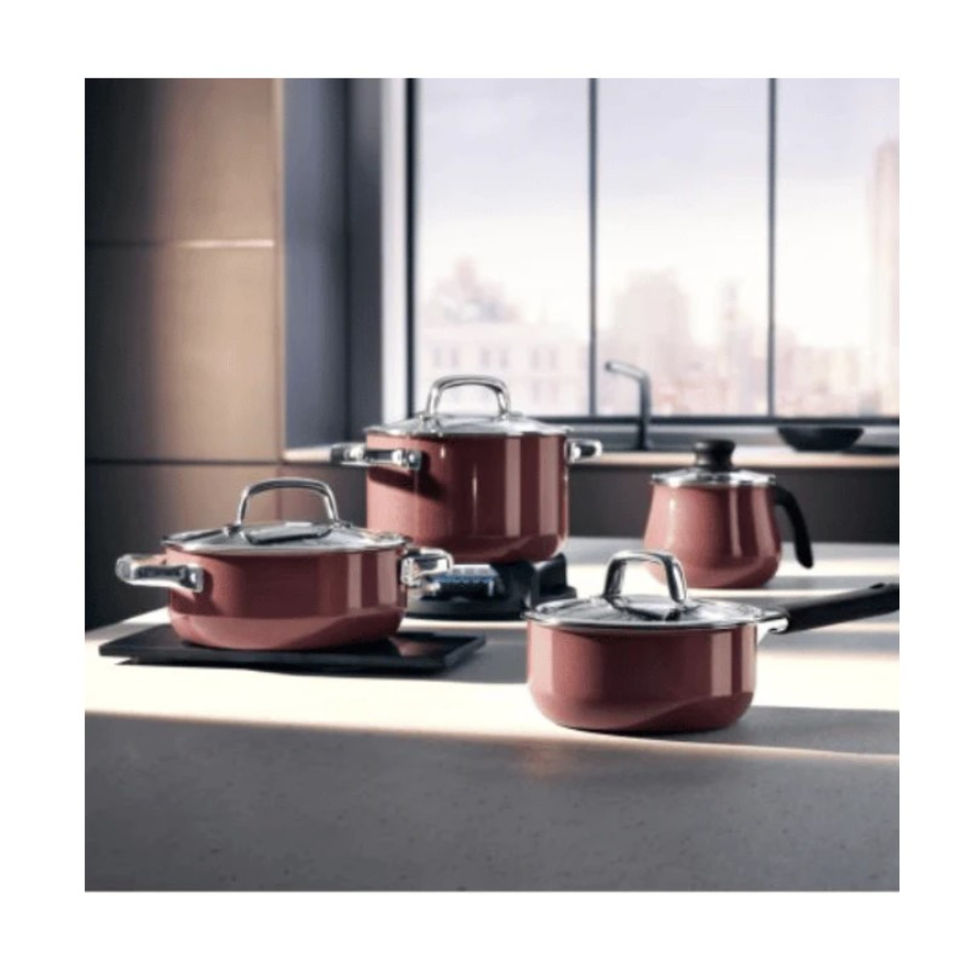 Juego de tapas de diseño completo de arroz de Color cobre de 4 cazuelas, olla caliente, calentador de alimentos, plato para servir, suministros para Buffet de boda y Hotel