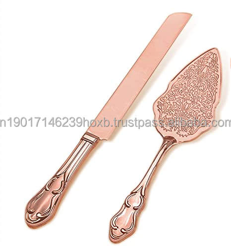 Juego de servidor de pasteles de diseño de cobre, juego de cubiertos de diseño de Acabado plateado, herramientas de corte de pasteles
